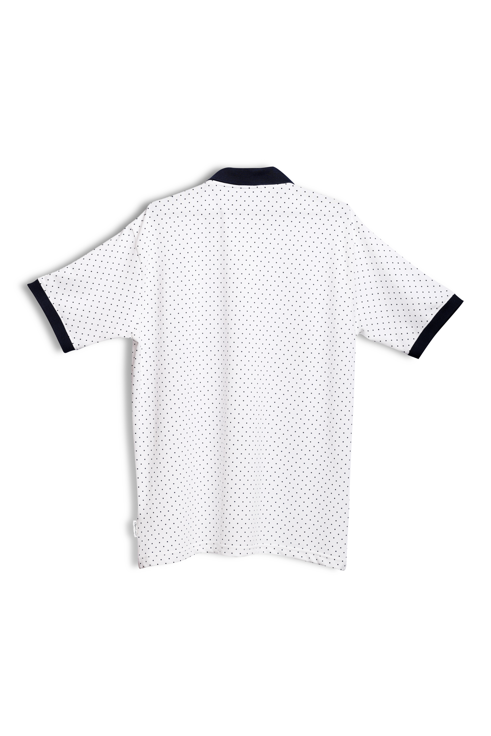 Playful Polka Dot Design, Striking Navy Contrast Accents, Ribbed cuff and Collar,Recycled Wooden Button Placket, Comfortable Half Sleeves, Clean Straight Hemline, Soft & Breathable Fabric.